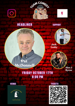 Pat McDonnell (H) - The main feature of the night, Pat has been entertaining audiences in Ireland for decades, and even more now to help him cope with his midlife crisis. A household name, Pat has featured in several shows throughout the years - most notably Father Ted but also Naked Camera and Savage Eye. And its his flair on both camera and on stage that makes him an extraordinary comic like no other with his dead pan deliveries and character roles, mainly in a strong Louth accent!